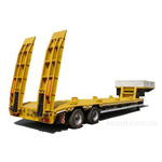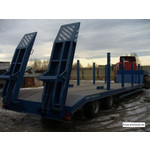 Трал низкорамный (полуприцеп-тяжеловоз) Hartung 9433-0000040 для транспортировки длинномерной строительной техники. Трал Hartung 9433-0000040 может осуществлять перевозку техники массой до 40 000 кг. Въезд техники на трал осуществляется по гидравлическим трапам с приводом от тягача.