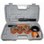 применяется для нарезания внутренней или наружной резьбы в деталях. Оснащен шестью клуппами выполненными из прочной стали, которая отличается стойкостью к большим нагрузкам и точностью выполнения работ. Набор расположен в пластиковом кейсе, который удобен для транспортировки и хранения инструмента