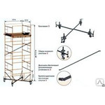 Размер рабочей площадки, м: 1,56 х 0,64. Максимальная высота, м: 6,2. Шаг установки настила, м: 0,4. Нормативная нагрузка на настил, кг: 150. Арендная ставка руб/сутки: Договорная (в зависимости от высоты и сроков).